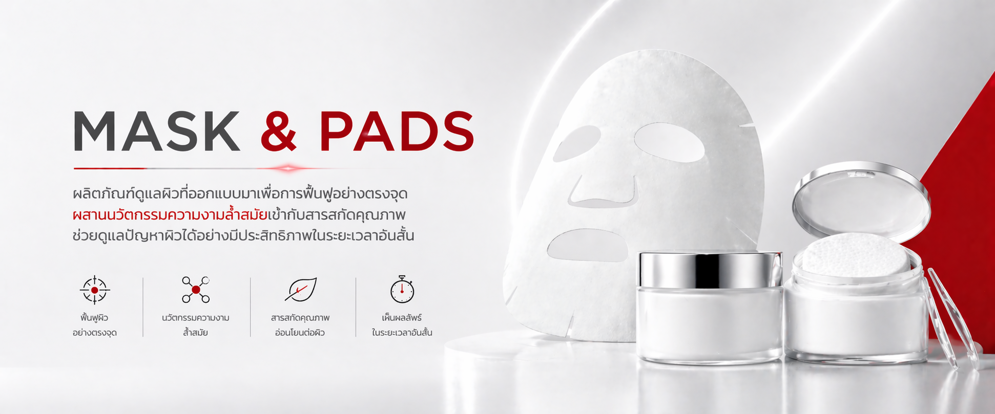 Mask & Pads ผลิตภัณฑ์บำรุงผิวที่ผสานนวัตกรรมความงามล้ำสมัยเข้ากับสารสกัดจากธรรมชาติ ช่วยฟื้นฟูผิวอย่างล้ำลึก พร้อมดูแลผิวได้อย่างรวดเร็วและตรงจุด ทั้งการเติมความชุ่มชื้น ปลอบประโลมผิว และปรับสภาพผิวให้เรียบเนียนสม่ำเสมอ